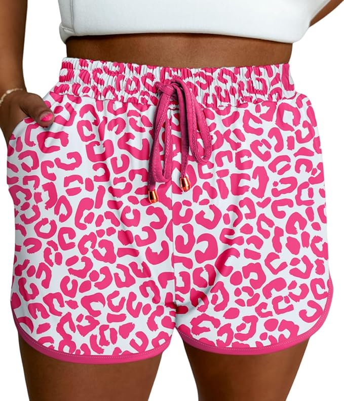 Women’s High Waisted Athletic Shorts Casual Leopard Print Running Workout Elastic Waisted Athletic Shorts.