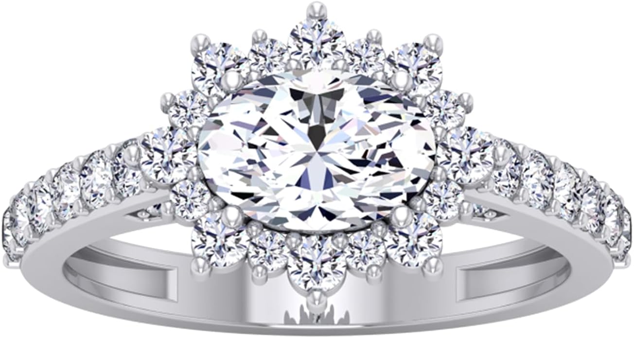• 1.73 Carat Total Weight – Showcases a radiant oval lab grown diamond with side stones for brilliant sparkle